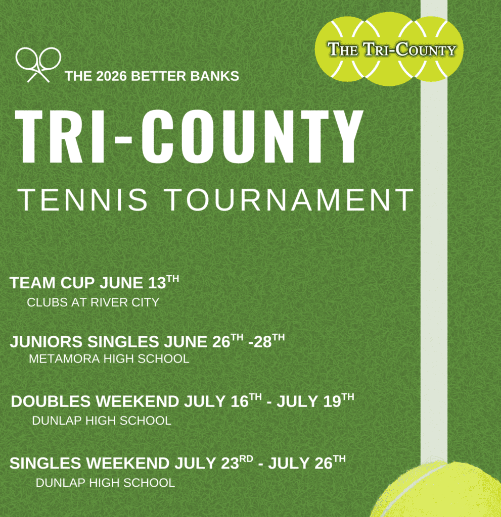 Tri-County Tennis, Inc. hosts the longest-running and largest tennis tournament in Central Illinois: the Better Banks Tri-County Tennis Tournament. Tri-County Tennis also provides opportunities throughout the year for social play for every level.